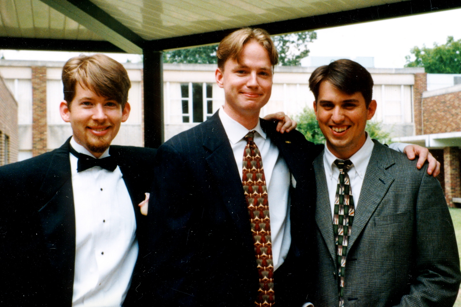 I think that this photo, which like the ones before it predate digital cameras and had to be scanned from a print, was made in New Orleans during Mardi Gras 1996. Behind Jeff and (now wife) Katy, you can see the future Megan Douglas and Dave Hanson.